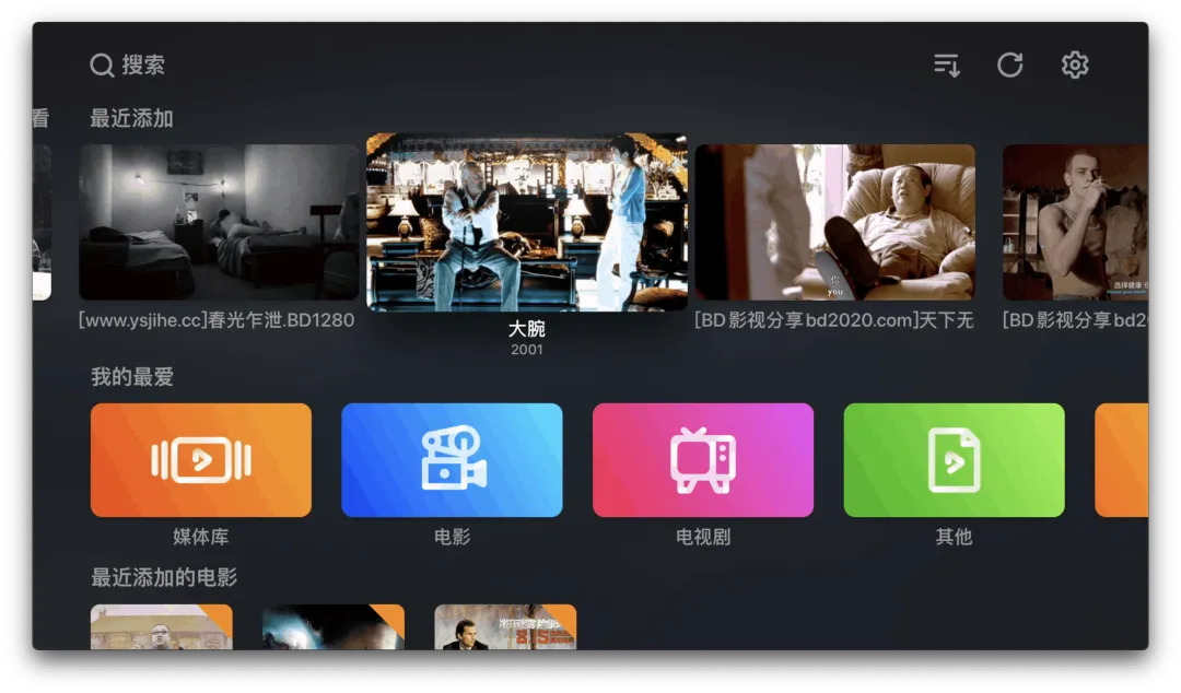 手机上保存新电影,TV 上就可以直接播放,很强大。