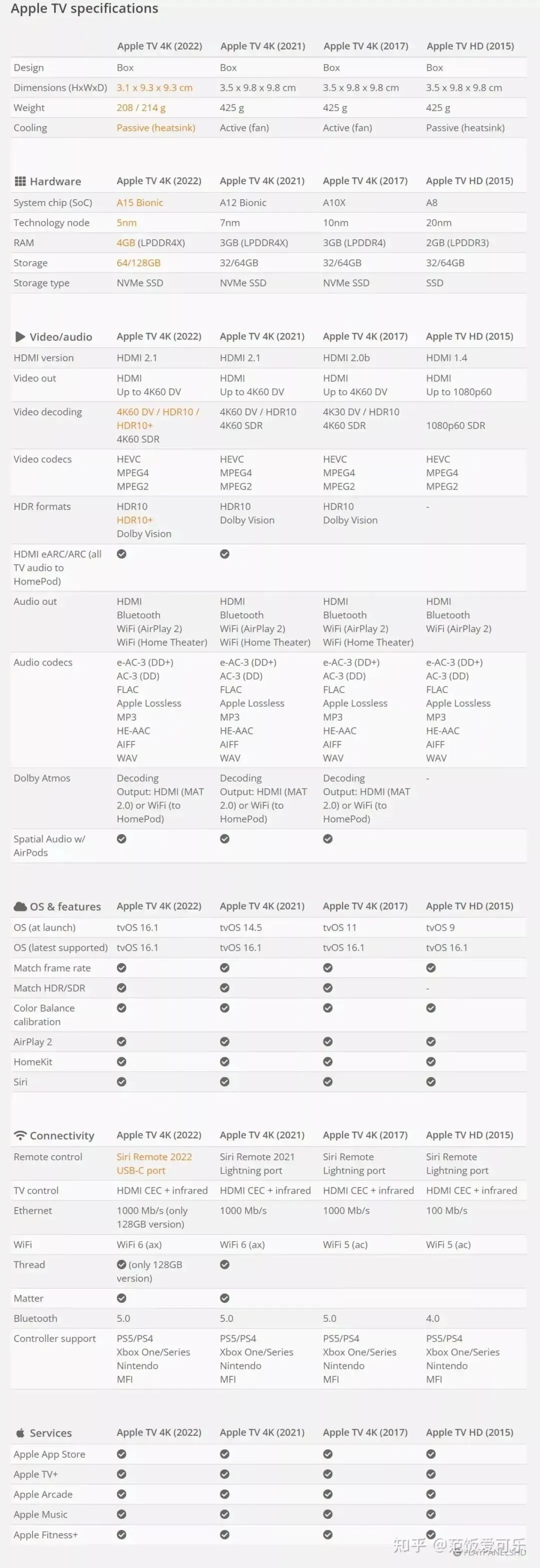 附知乎上捡的型号对比图: