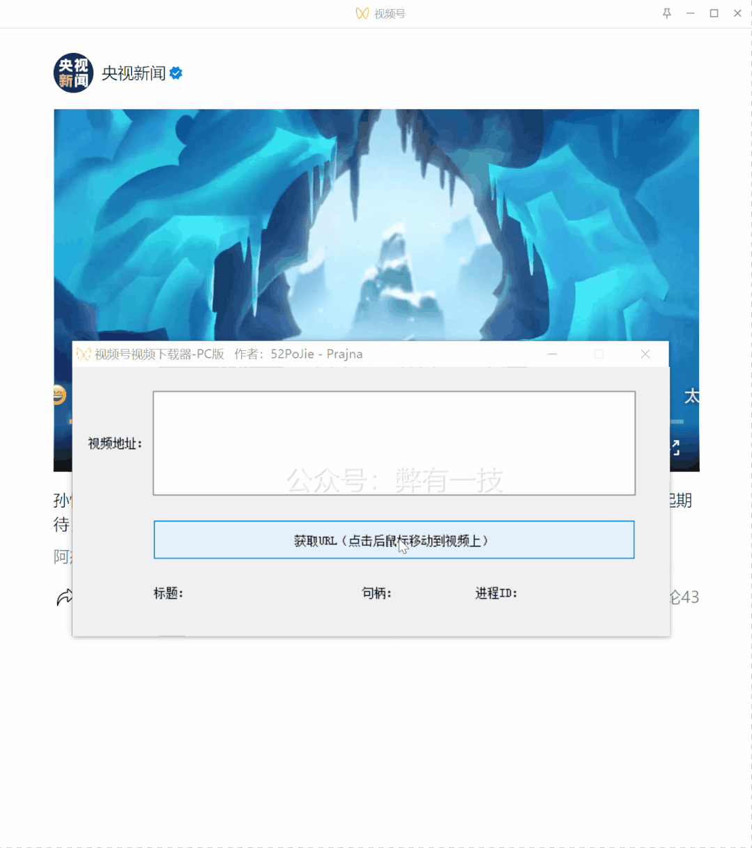 以下图所示,当我们将视频号的视频发送到电脑端微信打开,即可查看,而这个时候,就可以通过我们今天分享的这款软件来嗅探视频了,打开之后,点击【获取URL】,然后将鼠标划至视频播放页面即可。