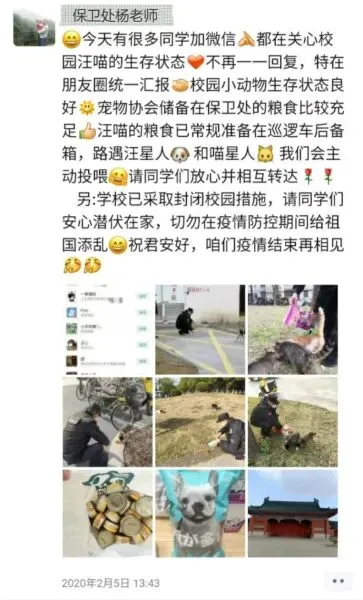 最近这段时间,受到疫情影响学生还未返校,上海交大保卫处队员不仅守护了校园设施,还照顾好了校园里流浪的猫猫狗狗。