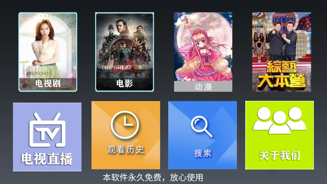 包含电影,电视剧,动漫,综艺,电视直播,还可以搜索!