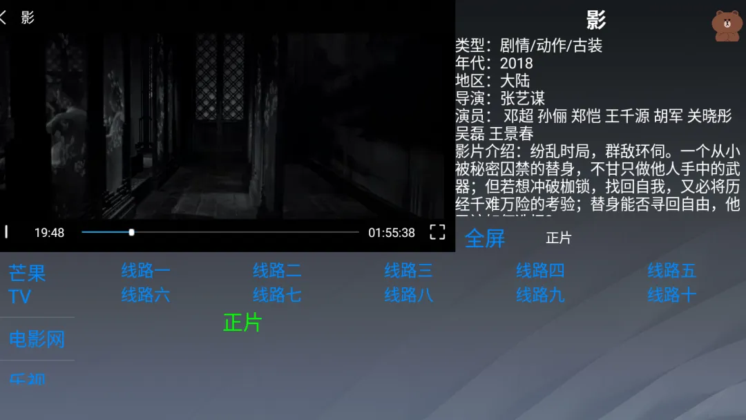 正片线路很多,可以根据需要切换不同的线路!就是界面有点简陋,估计开发者跟蓝叔一样,只懂技术,不懂审美,不过看片是足够用了!