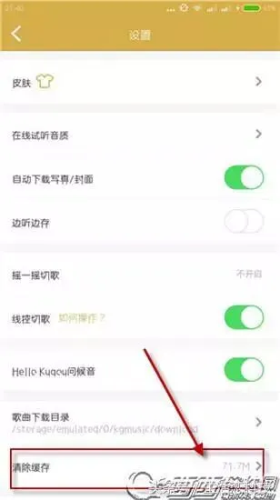 2、找到设置,清除歌曲缓存