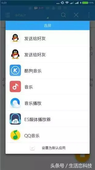 到这里不要勾选设置默认,先不要选择酷狗音乐,像es这样可以选择es媒体播放器,软件自带很实用