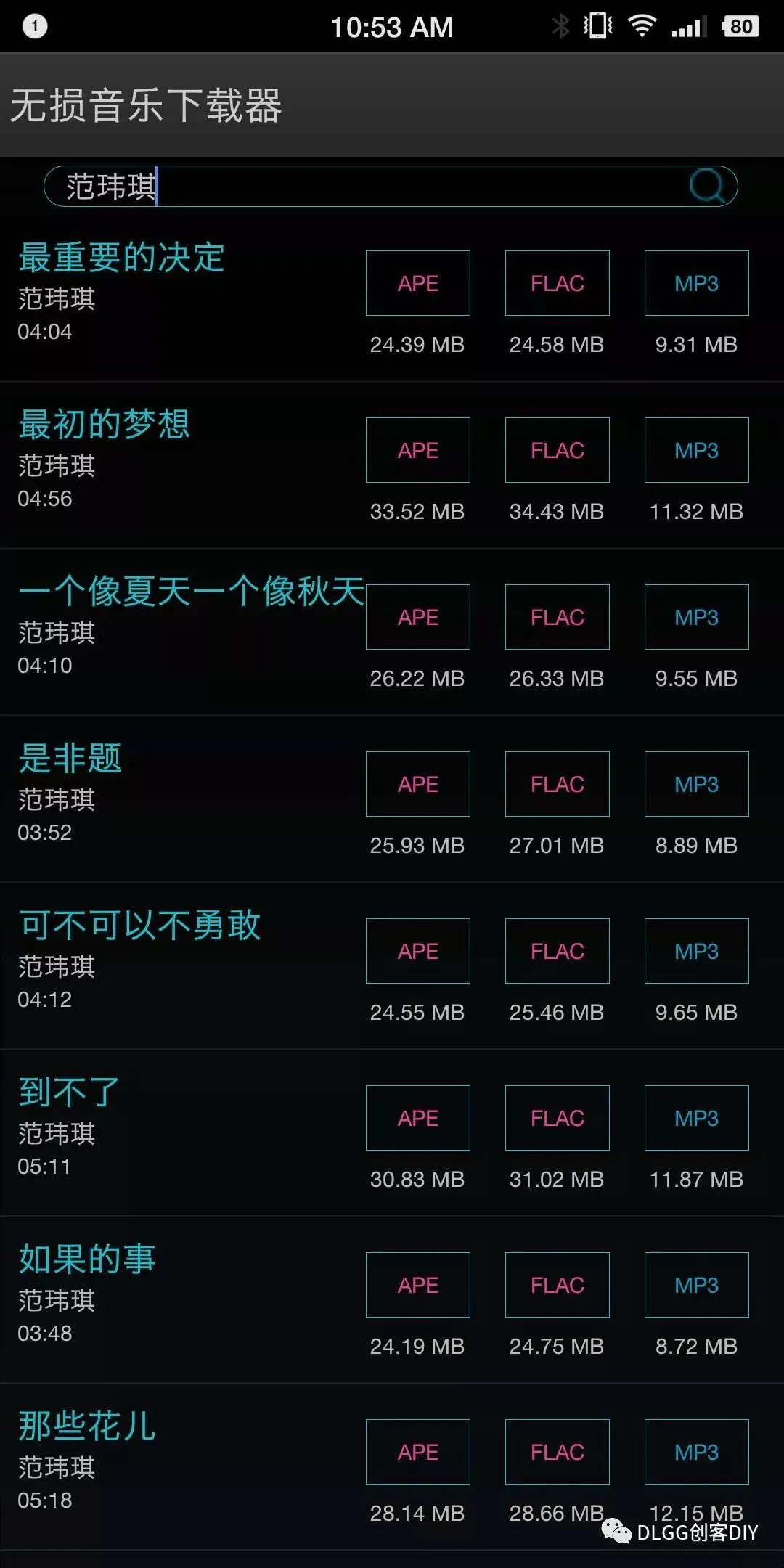 我搜索了几个歌名,好像没有APE、FLAC无损格式,都是MP3的音乐。