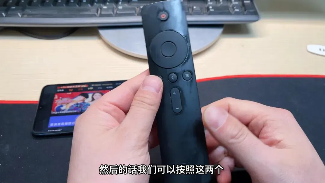 我们可以看一下像现在的遥控器基本都是蓝牙遥控器,然后的话我们可以按照这两个键重置一下蓝牙,然后的话通过可以通过与手机进行连接就可以了,但连接成功以后,我们按照左右上下键就可以直接控制手机,然后相当于用遥控器就可以控制手机了,也是非常简单。