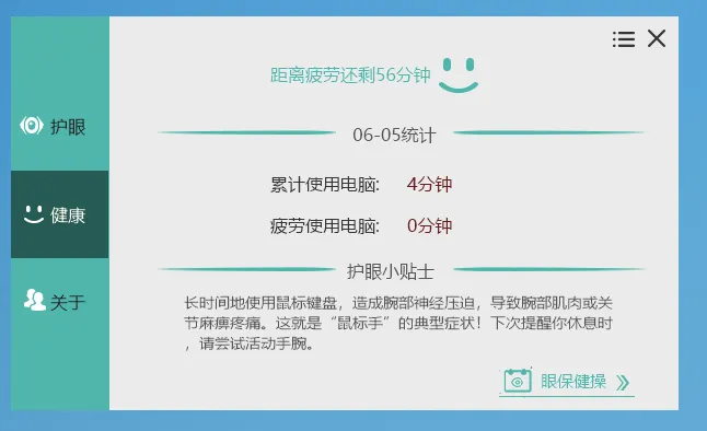 软件还会自动统计屏幕使用时长,到点后就会提醒你需要休息了,还是很贴心的