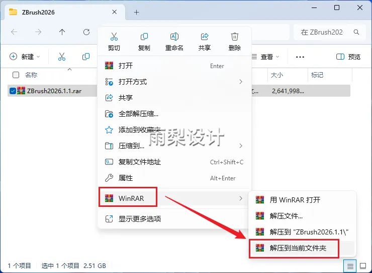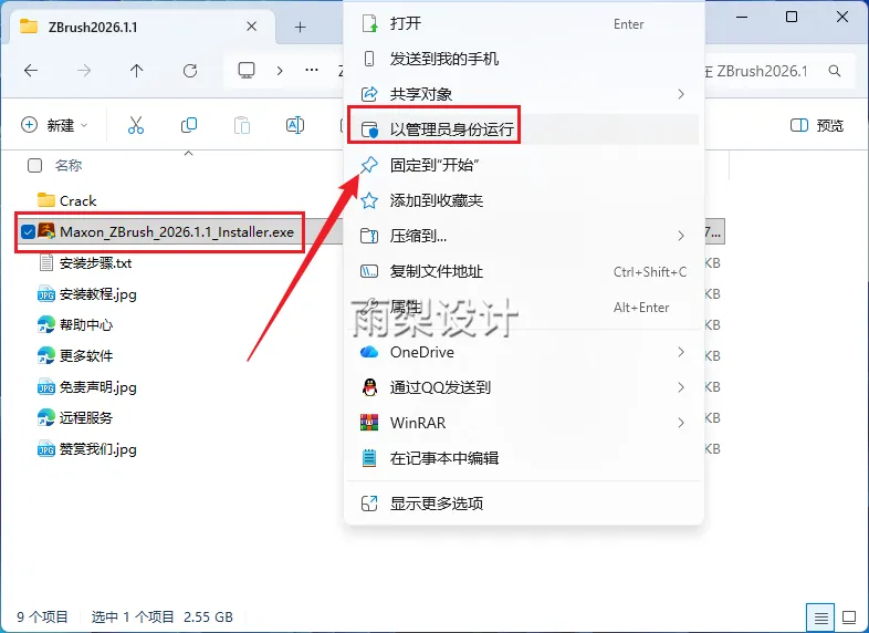 2.右键【Maxon_ZBrush_2026.1.1_Installr.exe】选择【以管理员身份运行】