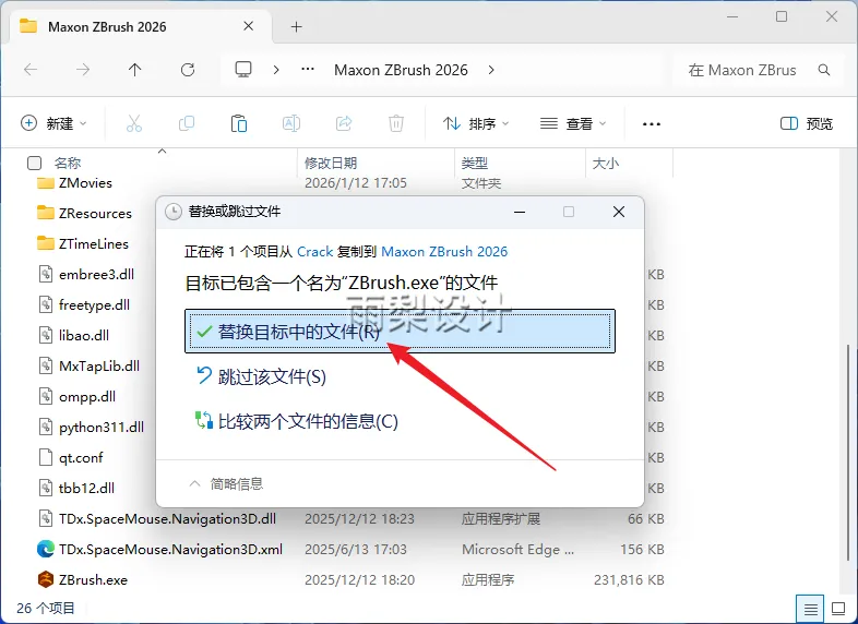 14.点击【替换目标中的文件】