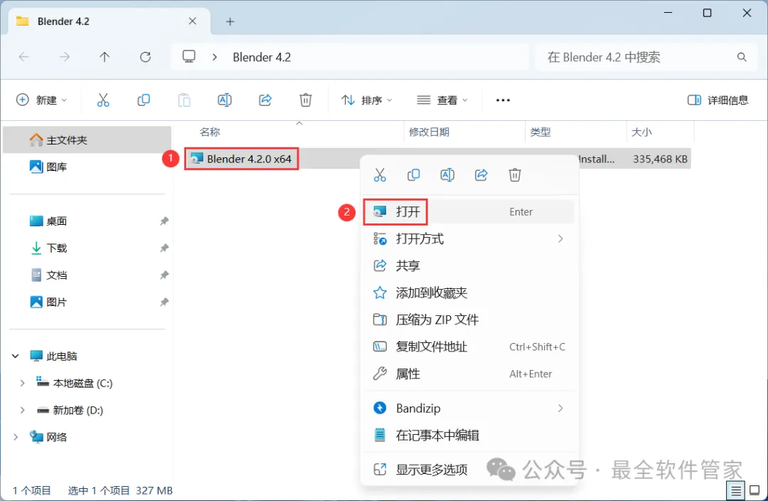 1、下载Blender 4.2软件安装包到电脑上,右键选择【解压到Blender 4.2\】