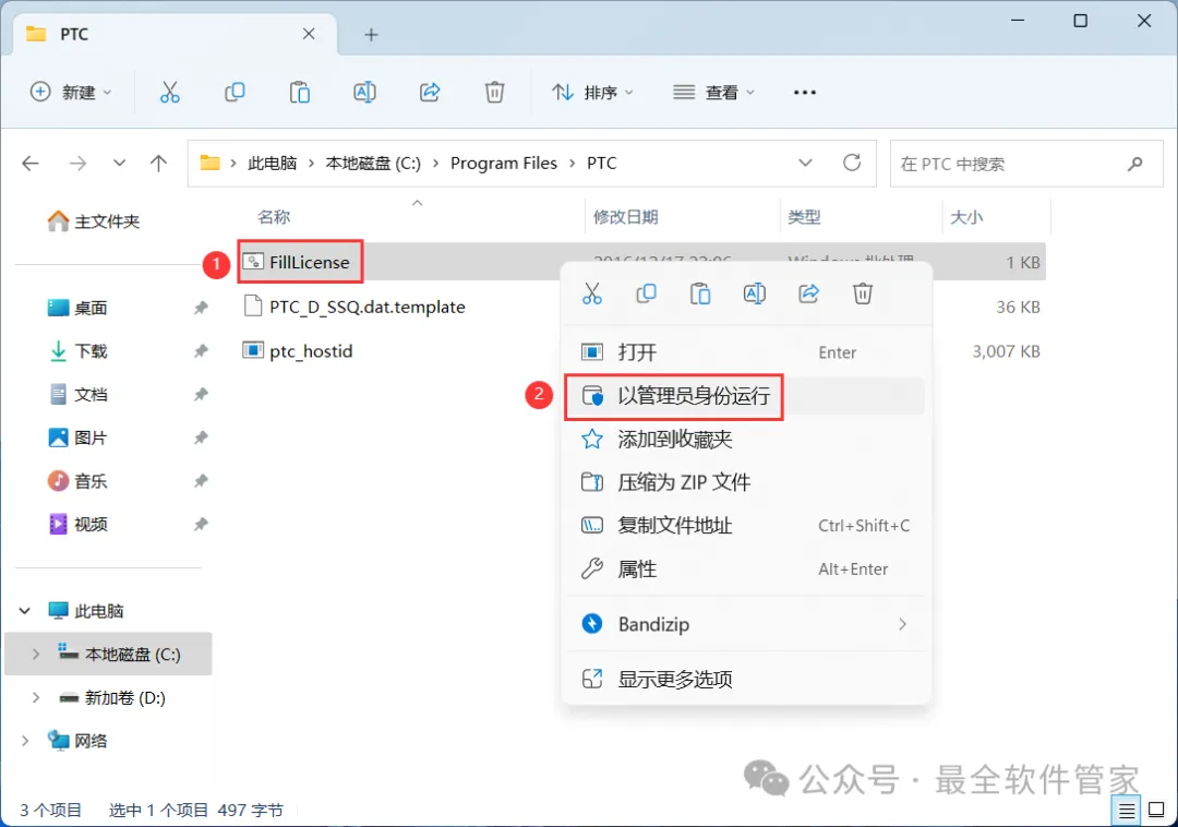 7、找到【FillLicense】程序,右键选择【以管理员身份运行】它