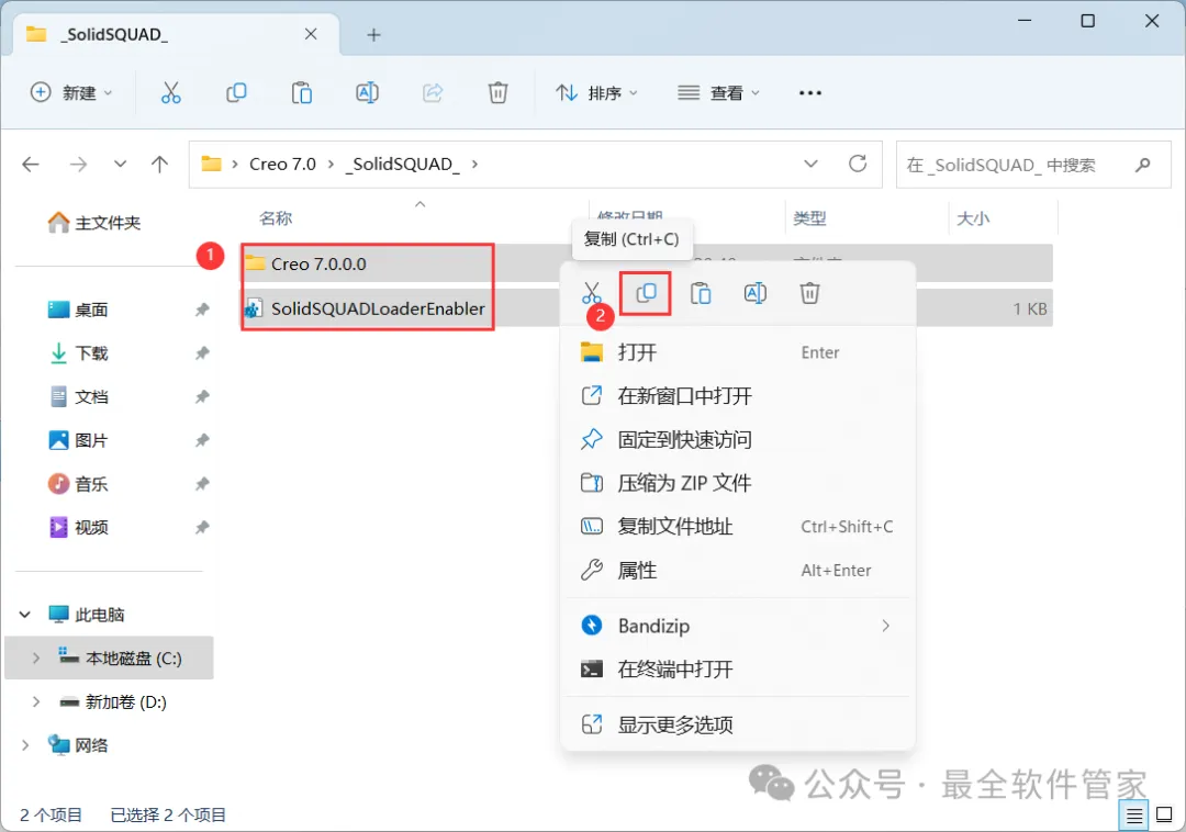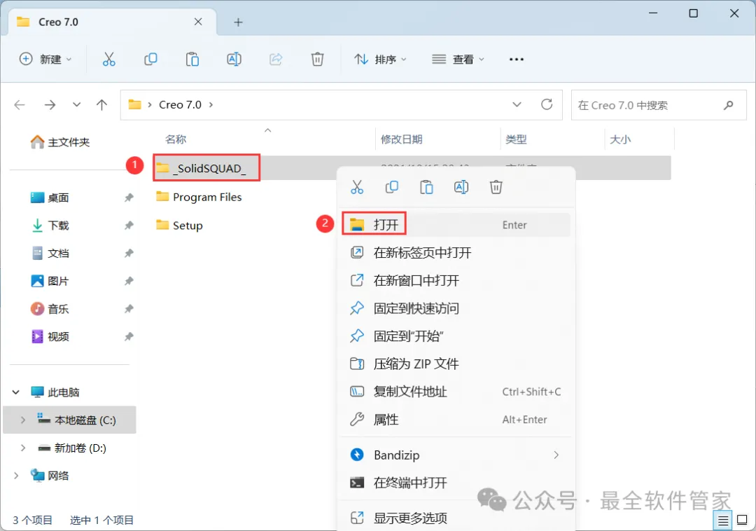 27、回到Creo 7.0文件夹,找到【_SolidSQUAD_】文件夹,右键【打开】它
