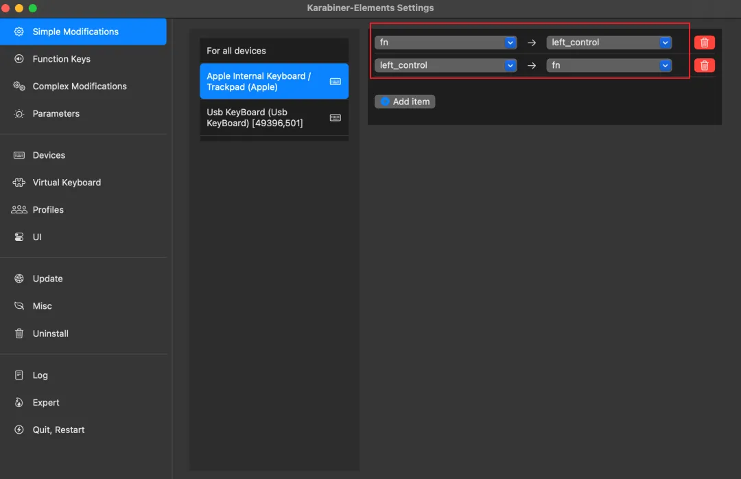通过 Karabiner-Elements将fn键和control键的功能互换