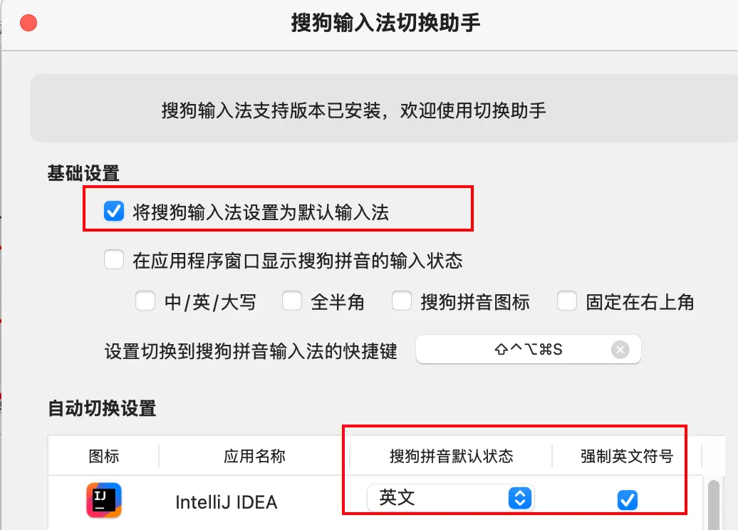 然后选择搜狗输入法切换输入法配置默认输入法,同时将一些常用的编码工具设置为默认英文确保打开IDE即可直接开始编码工作减少输入法校验这一步,从而提升日常工作的效率: