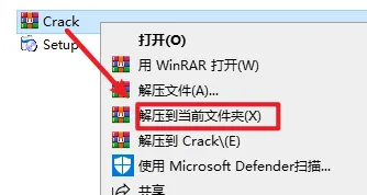 12.返回安装文件夹,选中“Crack‘文件夹,右键选择“解压到当前文件夹”