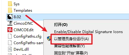 16.选中复制过来的”8.02.exe“文件,右键选择“以管理员身份运行”