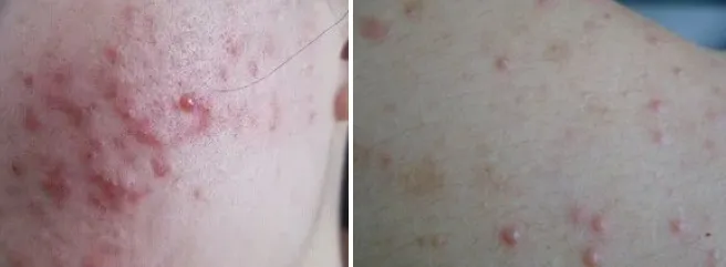 (左:痤疮 右:毛囊炎)