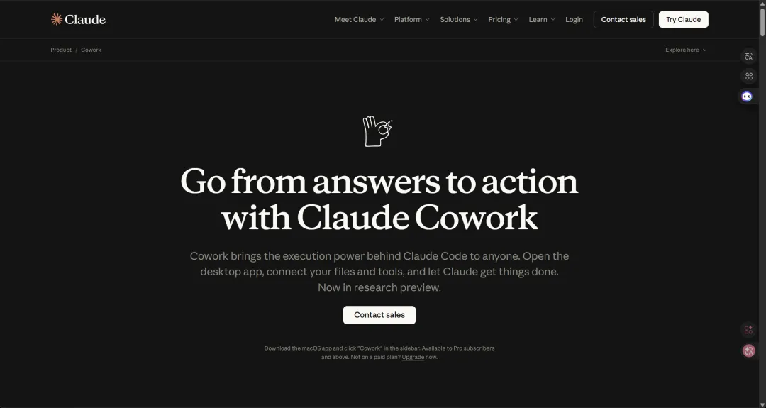 Anthropic 在官网低调上线了 Claude Cowork