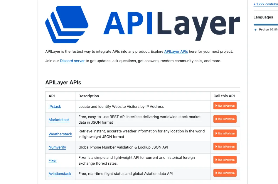 全网最全的免费API集合,收录了超过1000个公共API。