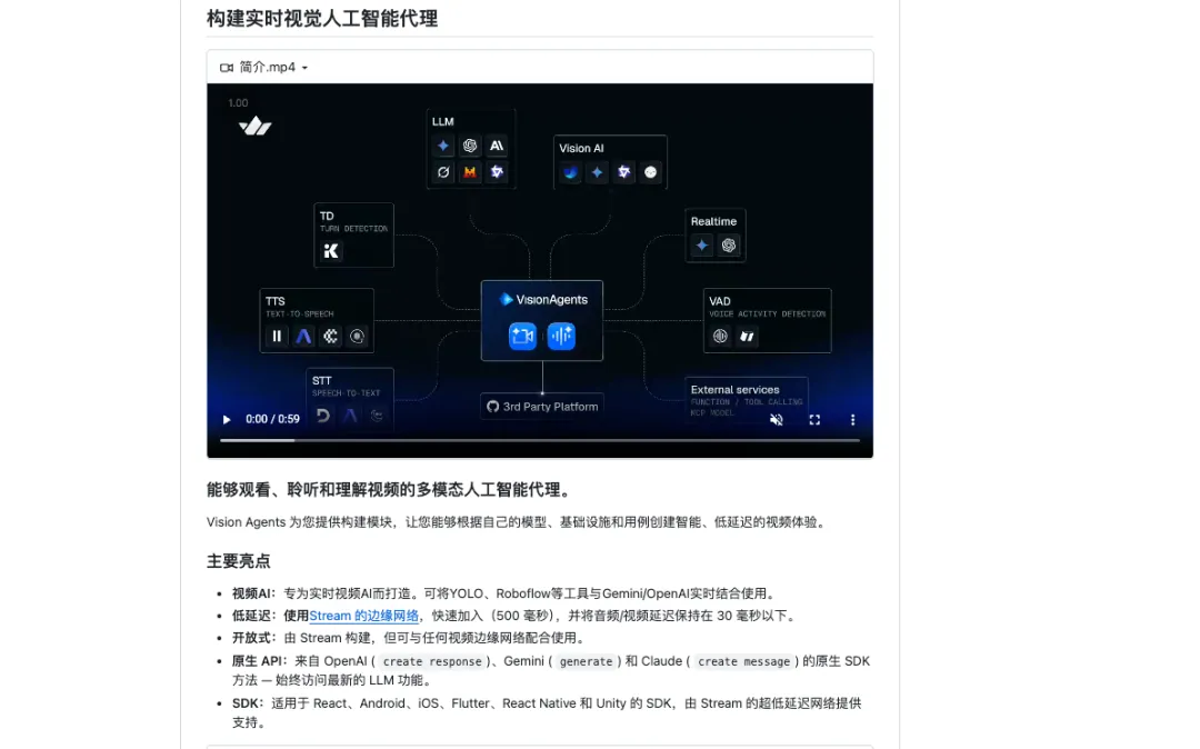 开源地址:https://github.com/GetStream/Vision-Agents