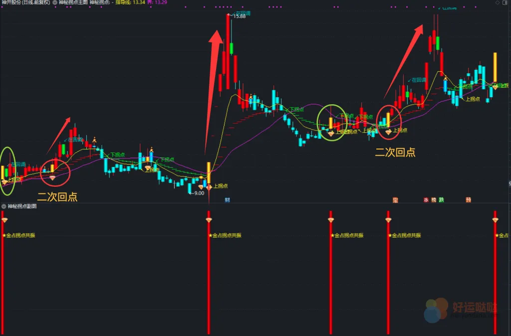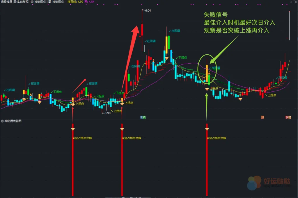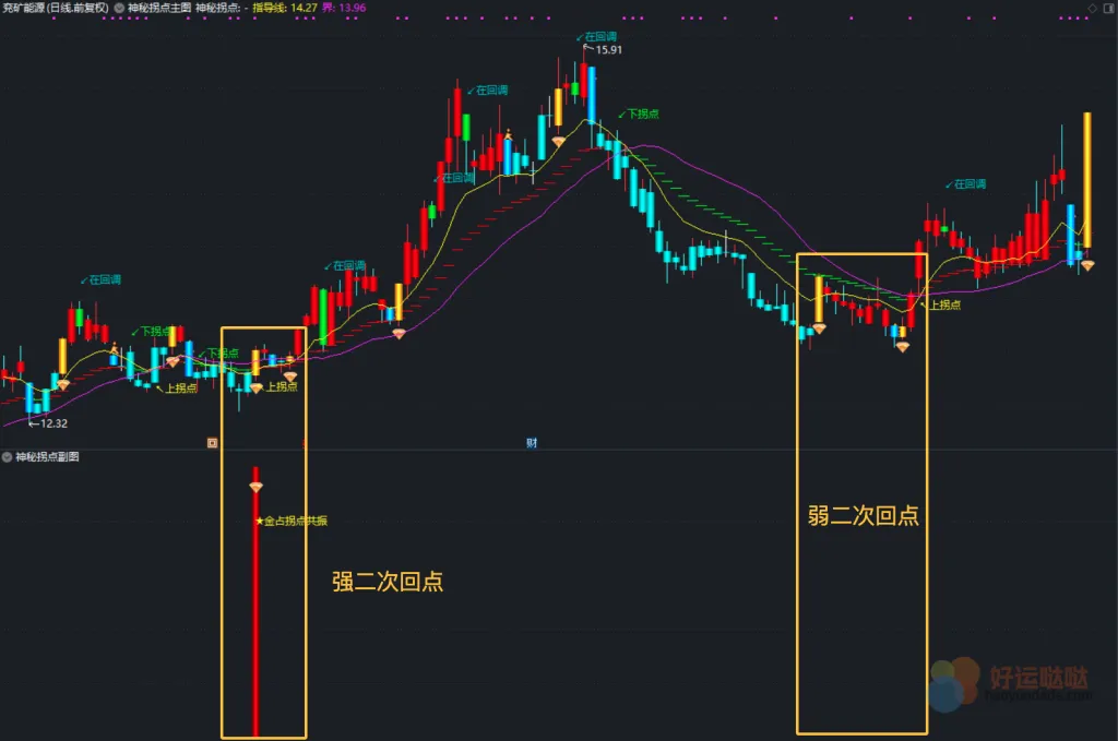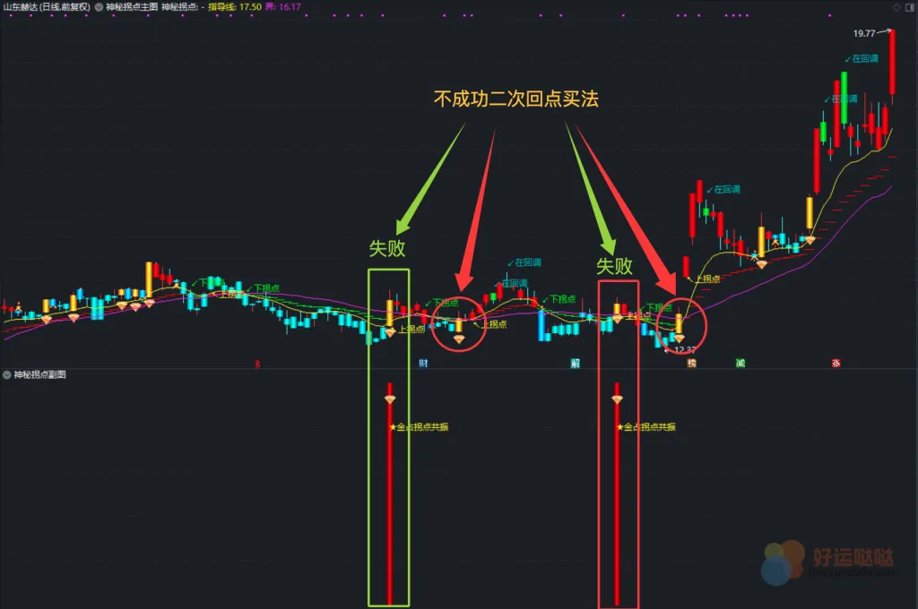 (不成功二次回点买法最好是与副图共振失败后的回点黄钻信号,其他黄钻二次回点相对较弱风险也较大)