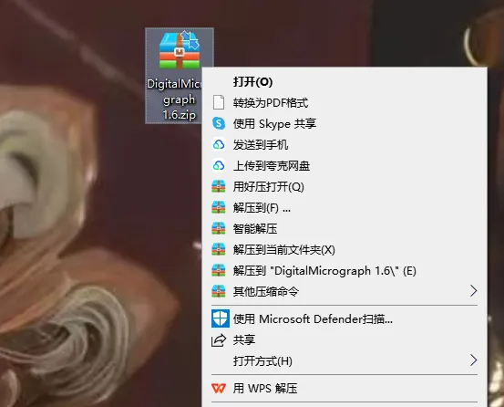 鼠标右键点击下载好的压缩包,选择解压到“DigitalMicrograph 1.6\”(E)