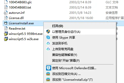 鼠标右键点击【LicenseInstall】,选择以管理员身份运行