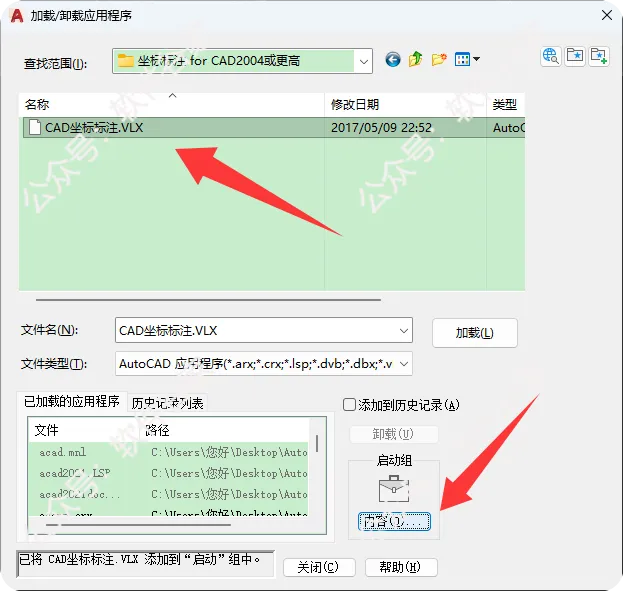 为避免每次手动加载,可将文件添加到“启动组”→点击“内容”→“添加”→选中vlx→关闭对话框。