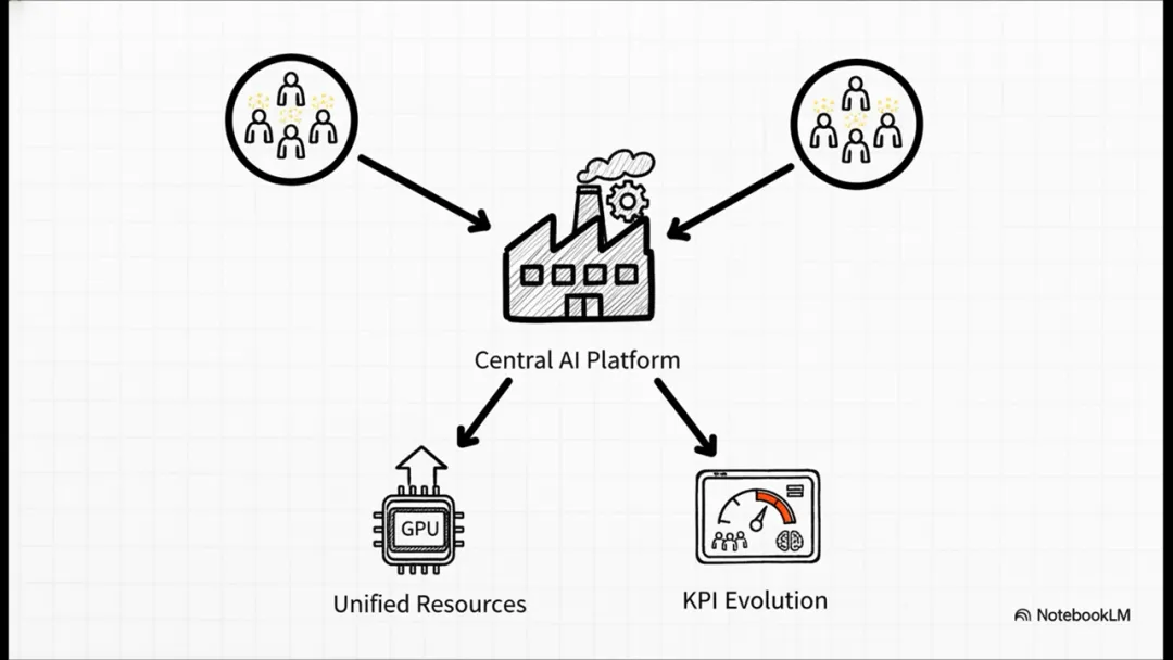 • 建立中央AI平台:像“军火库”一样,统一提供强大的基础模型和算力,避免重复造轮子。 -