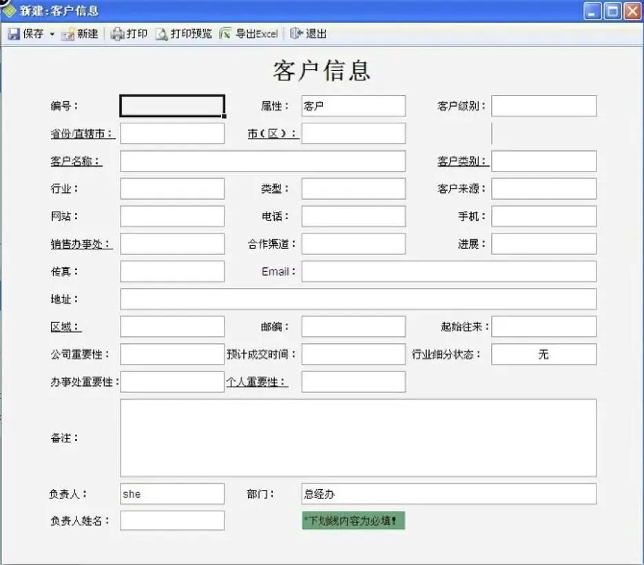 10.制作完成后,可以在页面看到,点击【新建】,就可以录入客户信息了。