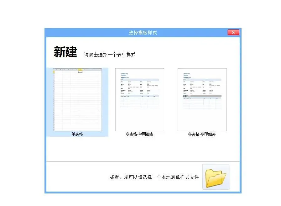 5.进入以下界面,双击【单表格】,进入设计界面;