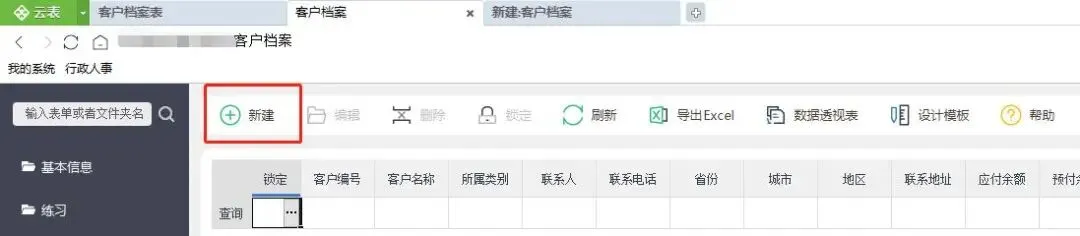 4.进入文件夹(客户档案表),点击【新建模板】;