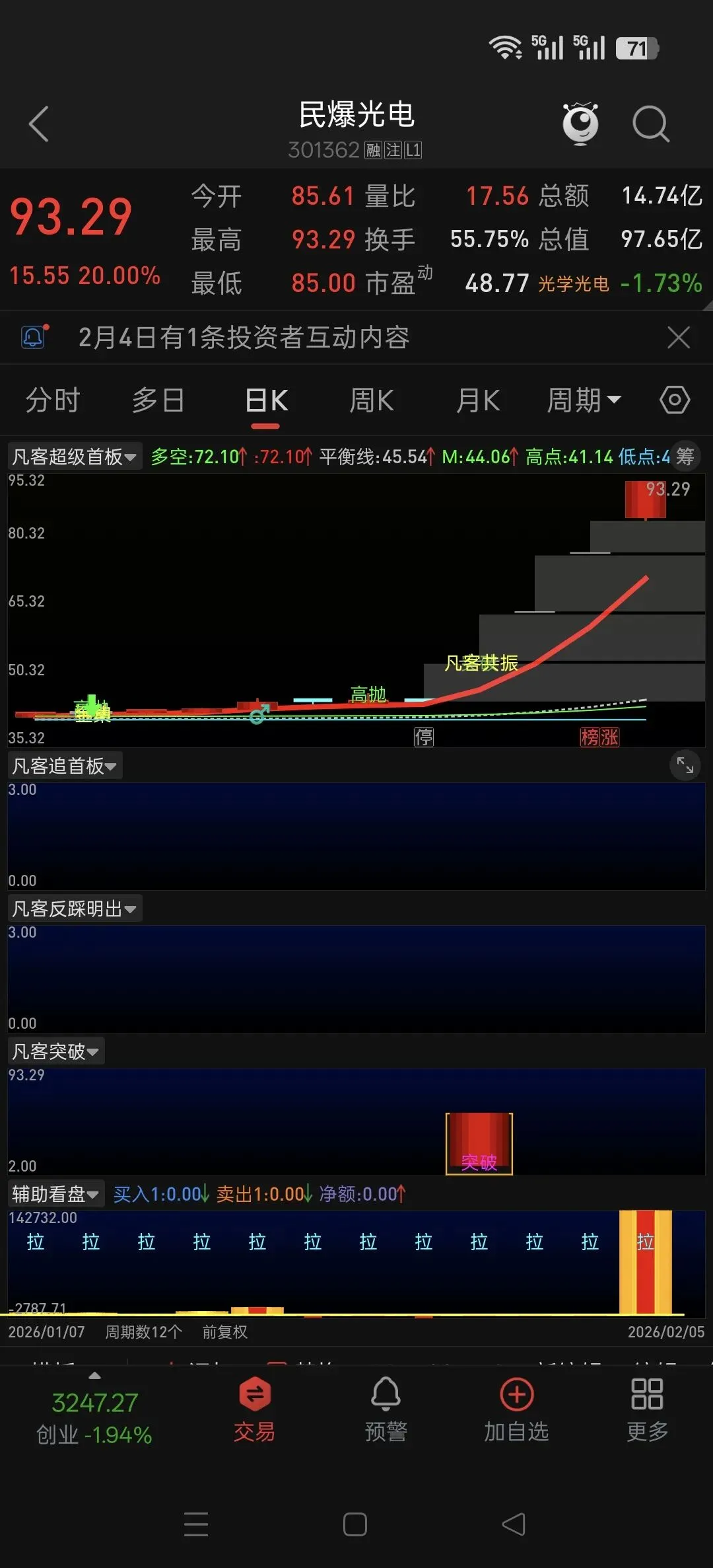 资金异动副图源码今天竞价牛1出票一只涨停.有需要的联系我可以优惠.