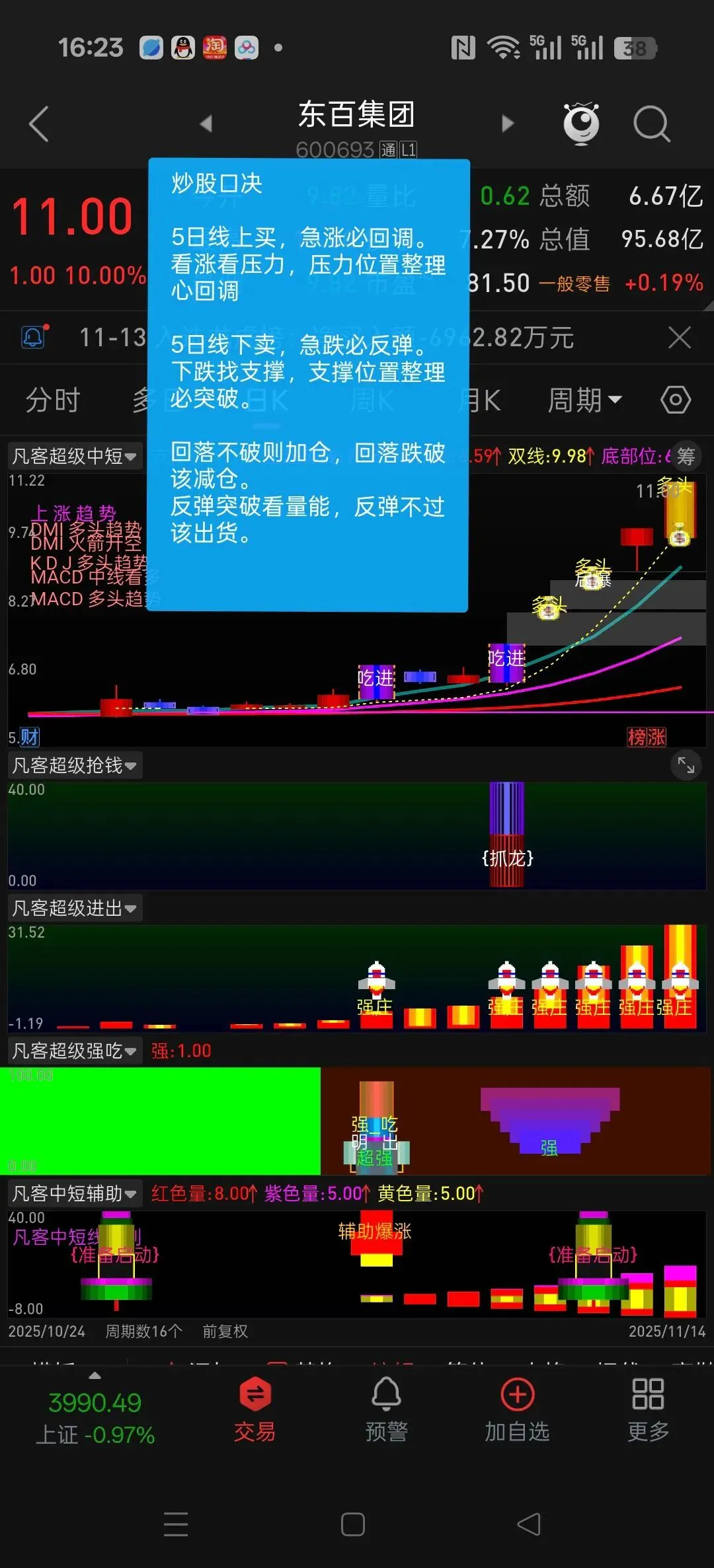 点火:STICKLINE(CYS13>5 AND DIFF>DEA AND C>=EMA(C,5) AND A1-B1>0,0,-做空,2,0 ),COLORRED;