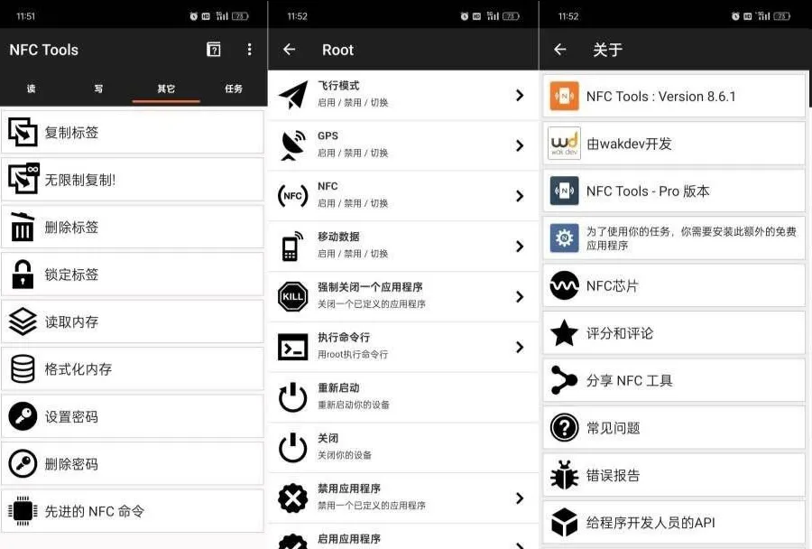 NFC Tools 是一款专为Android设备设计的强大NFC(近场通信)工具。它通过其强大的读写能力、灵活的配置选项及广泛的兼容性,帮助用户高效管理和利用手机内置的NFC功能。无论是模拟门禁卡、公交卡,还是自定义任务流程,NFC Tools 都能以简洁的操作界面和直观的功能设计满足不同用户的需求。这款应用非常适合需要频繁使用NFC功能的用户,提供了一站式的解决方案