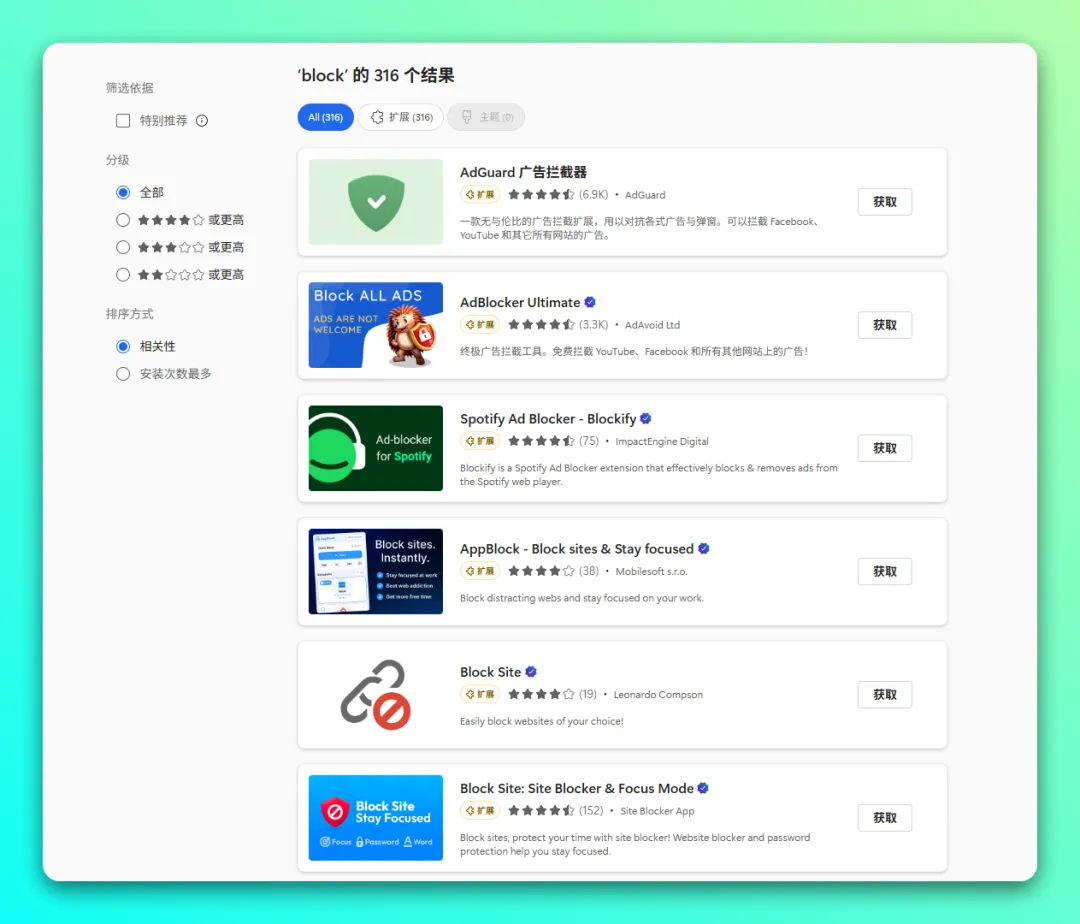 ✅ 1.浏览器安装「广告过滤」插件,屏蔽竞价排名虚假官方,目前主流的插件有 AdGuard、Adblock、uBlock Origin 等。安装好后,通常勾选 EasyList 的规则就能屏蔽大部分推广,如果你需要更严格的屏蔽,自己勾选规则即可。
