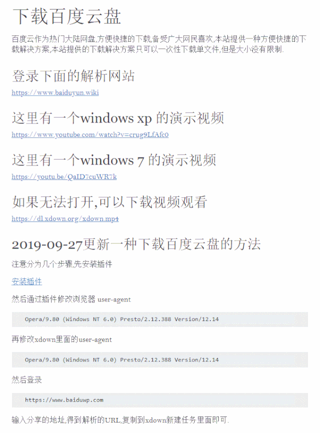 2、“百度云作为热门的大陆网盘,方便快捷的下载,备受广大网民的喜欢啊,在Xdown的网站里提供了方便快捷的下载解决方案,只可以一次性下载单文件,不过大小没有限制。”这是Xdown的官网介绍中提到的百度云的下载,官网里面提供了一个解析网页,解析出来后,直接复制链接到Xdown里面就可以进行下载了。