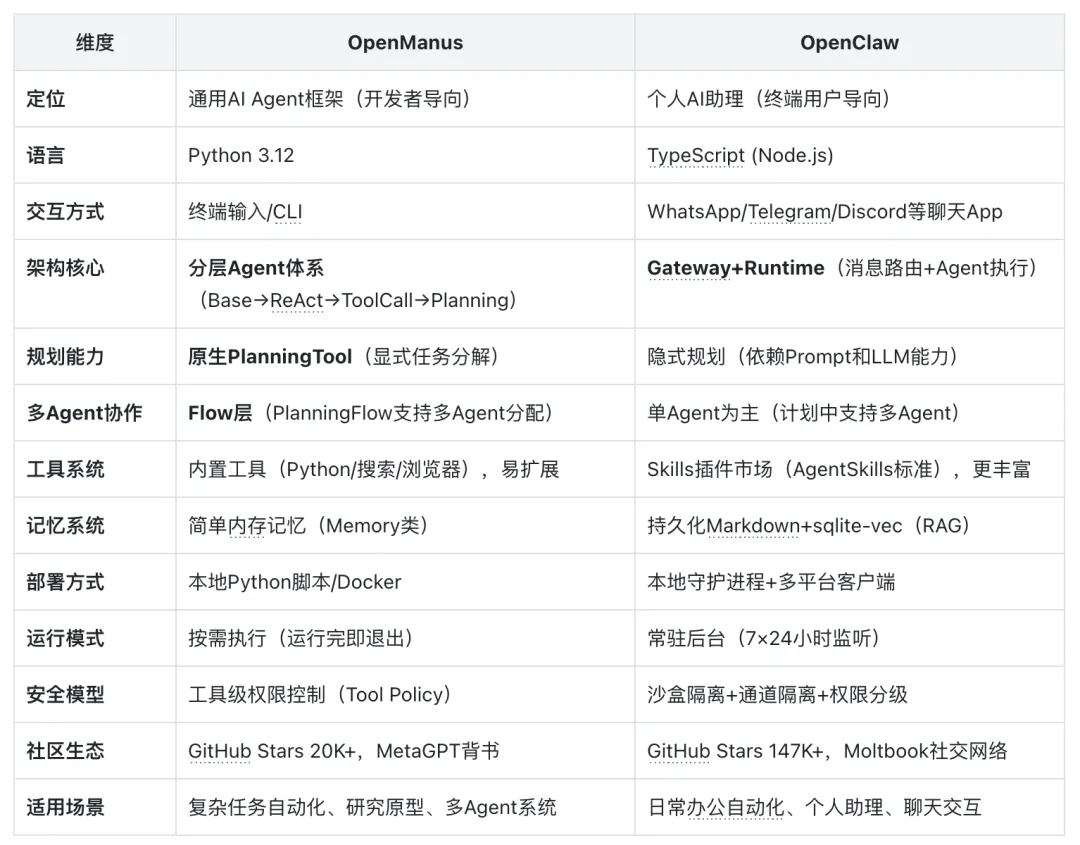 六、OpenManus vs OpenClaw:架构对比