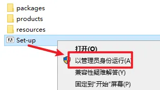 2.打开刚刚解压的文件夹,选中“Setup”右键选择“以管理员身份运行”