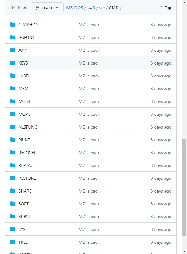 定睛一看,微软官方啊,搜了一下才知道,原来前两天,微软把MS-DOS 4.0系统开源了!