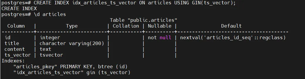 CREATEINDEX idx_articles_ts_vector ON articles USING GIN(ts_vector);