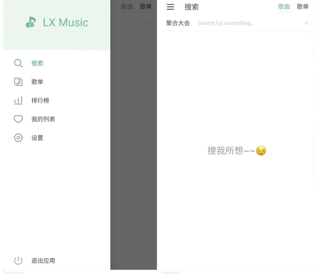 使用LXMusic前需先手动导入音源(新版已不再内置),导入后就能搜索到几乎全网的音乐歌曲。