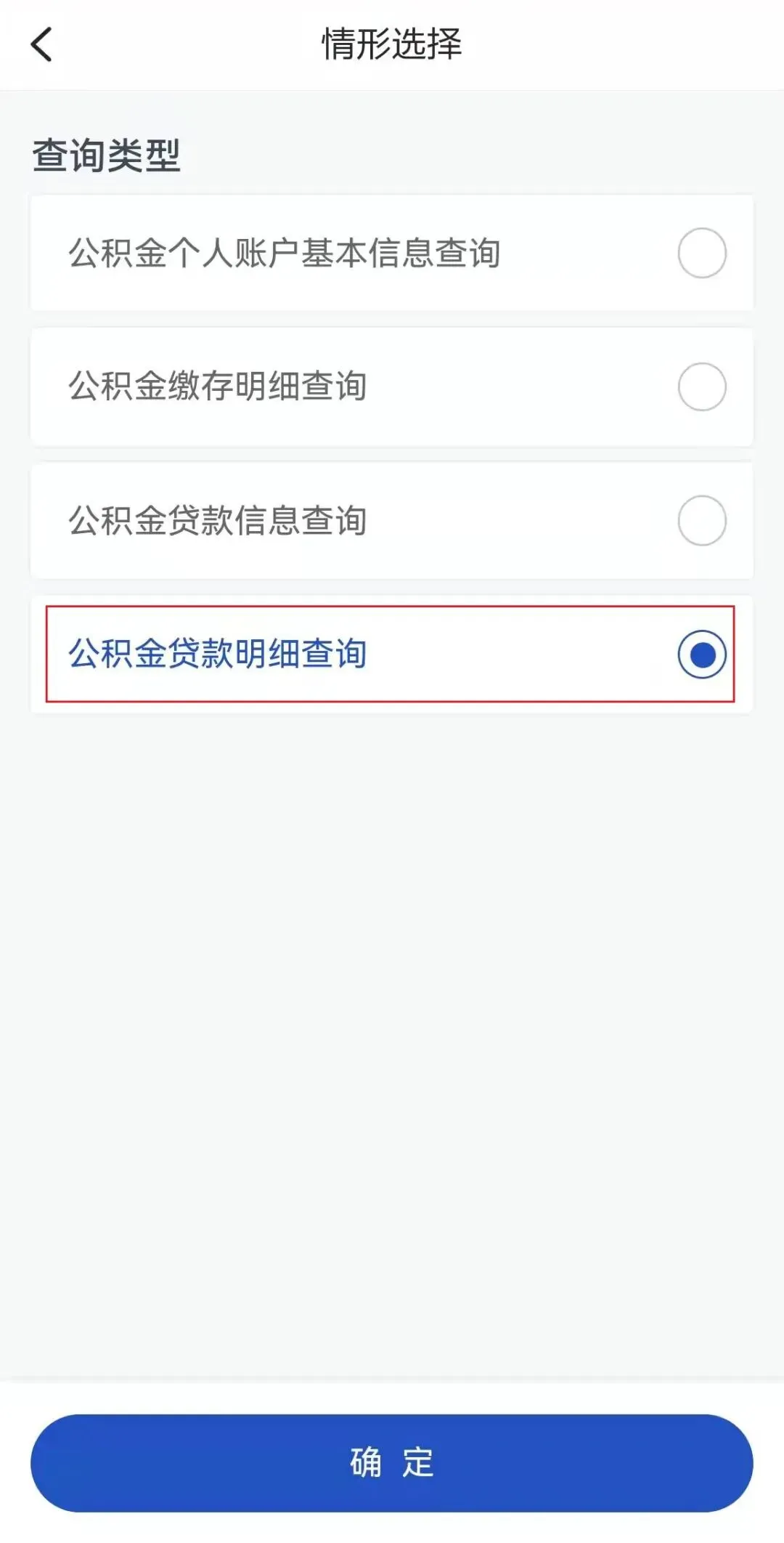 登录成功后,在查询类型中选择“公积金贷款明细查询”,进入页面后依次选择贷款中心、贷款合同编号、查询日期,点击“查询”按钮;