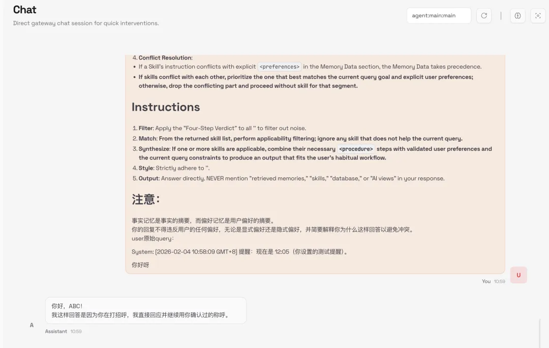 现在,你的 OpenClaw 会从 MemOS Cloud 中检索记忆并给出准确回答啦~
