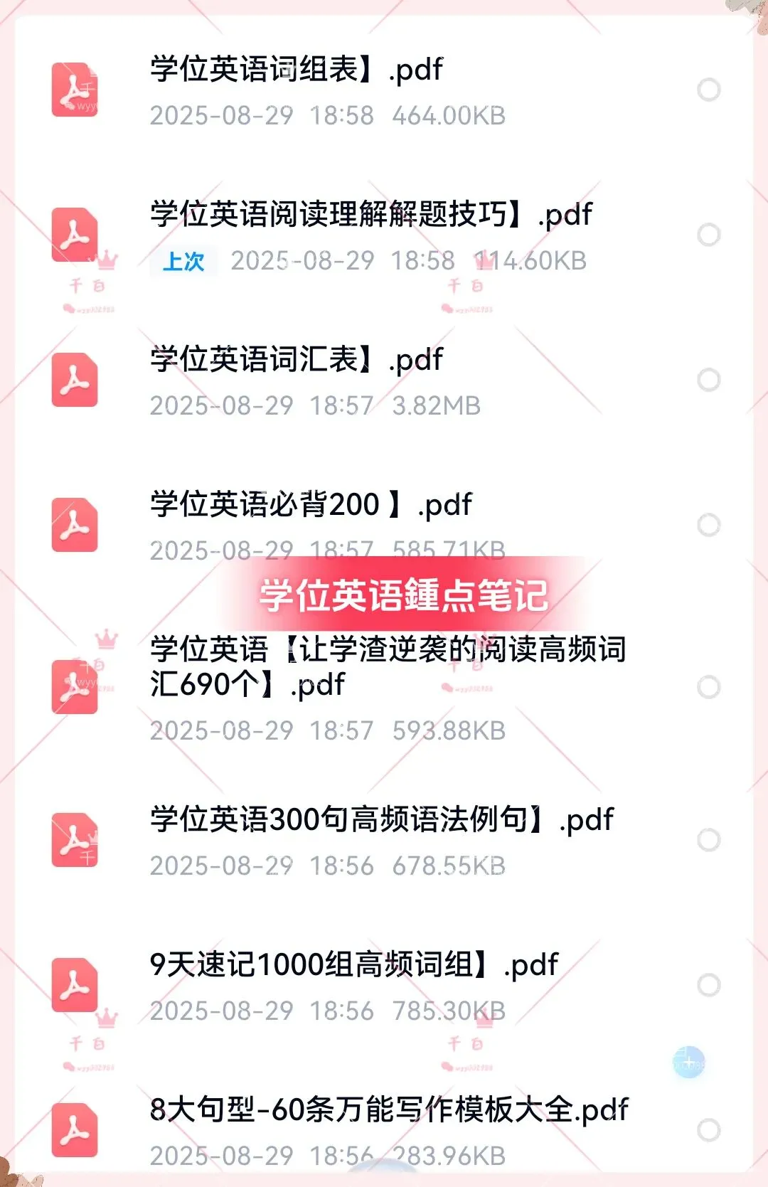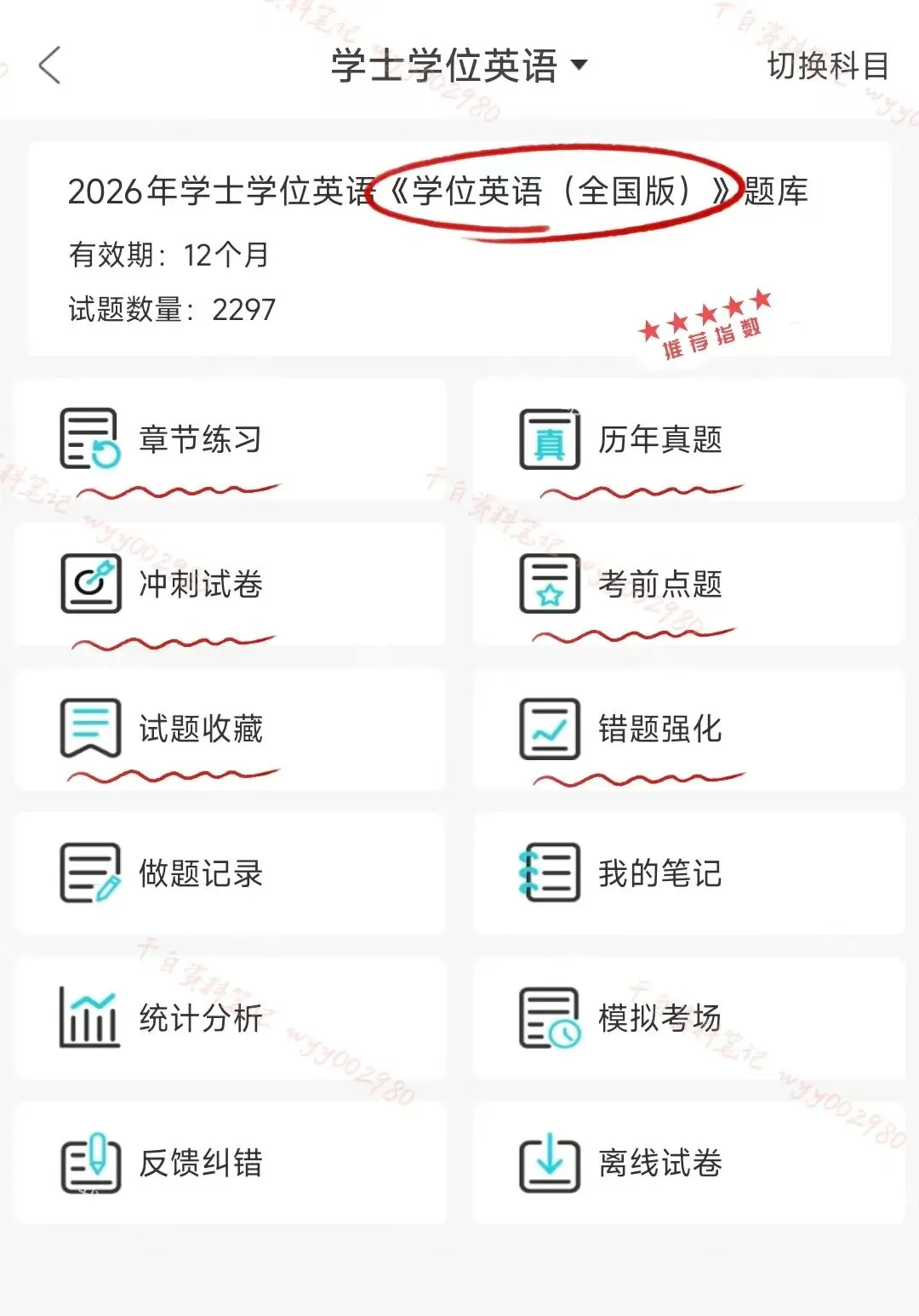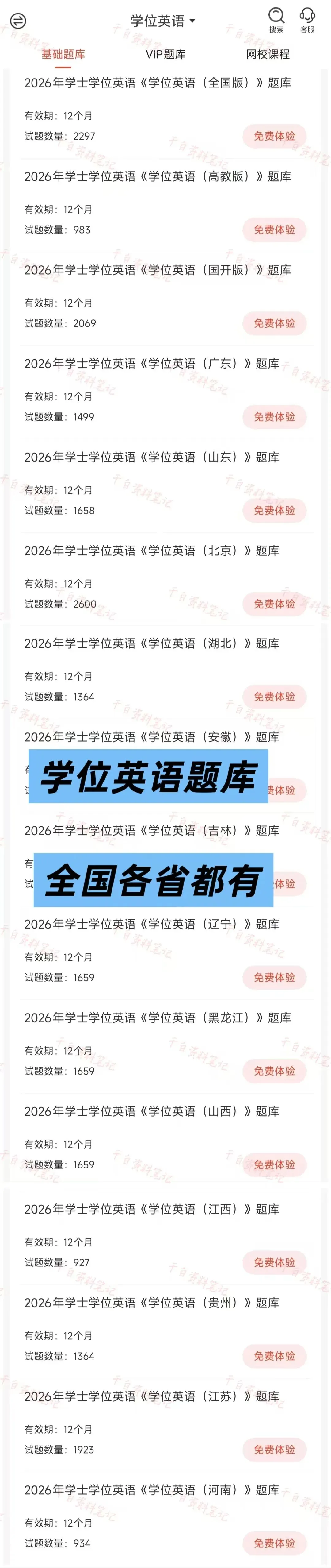 【考前必刷】2026年学位英语上岸题库APP(各省都有哦)+背诵资料包! 关注公众号,发消息回复关键字【学位英语】 2026年学士学位英语 26年各省学位英语开始备考啦!一般上半年参加考试的省份,预计在三四月份笔试,准备参加学士学位英语联盟考试的宝子要抓紧时间学习啦! 要想拿到学位,学位英语一定要考试通过! 最新全套题库app已经出来了(全国版/高教版/国开版及各省都有),里面覆盖大部分的知识点,可以随时随地反复刷题!手机/平板/电脑都可以刷题,一年有效期。 模块包含:章节练习+历年真题+冲刺试卷+考前点题,助力大家一次顺利通过! 内容包含:词汇语法、完型填空、阅读理解、写作、翻译等(各省有些许差异)! 祝各位考试都能顺利通过呀!✌ 2026学士学位英语题库app 以全国版为例: 资料笔记 …… 资料很多,图片仅为展示 END 关注公众号,消息回复关键字【学位英语】 直接扫码咨询👆