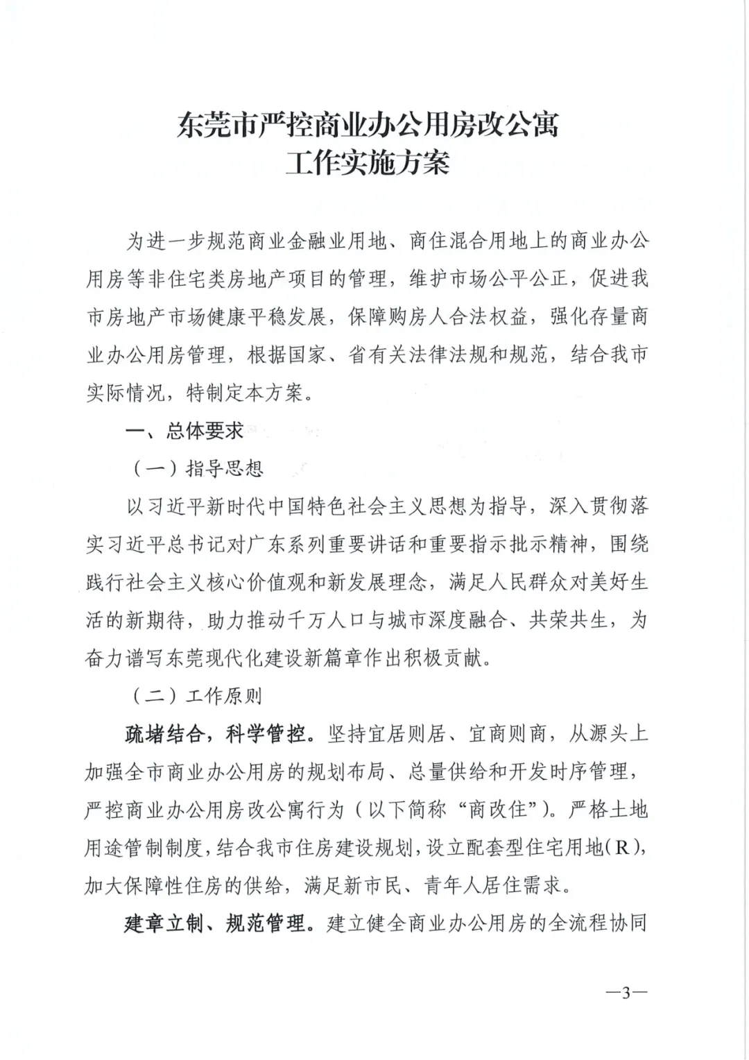 根据方案,接下来东莞将坚决杜绝新的“商改住”行为,依法加强存量商业办公用房的监管。