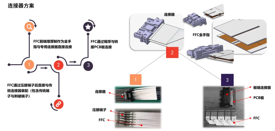 FPC也可以应用此种方式,前端接口采用锡焊与插件端子连接。