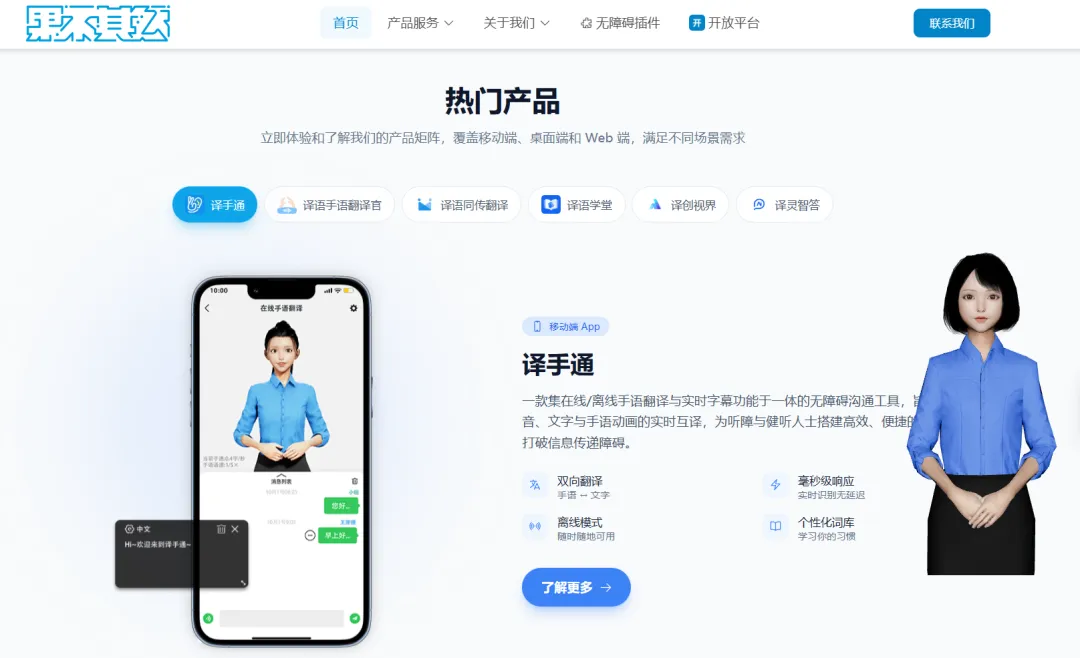 核心用处:这家公司的手语翻译产品覆盖手机、平板、电脑,手机端叫译手通,没网的时候也能翻译,反应快得很;平板端适合去银行、医院柜台用;电脑端还能支持会议同传,上班开会也不怕跟不上。不过暂时还没上线APP,期待值拉满~