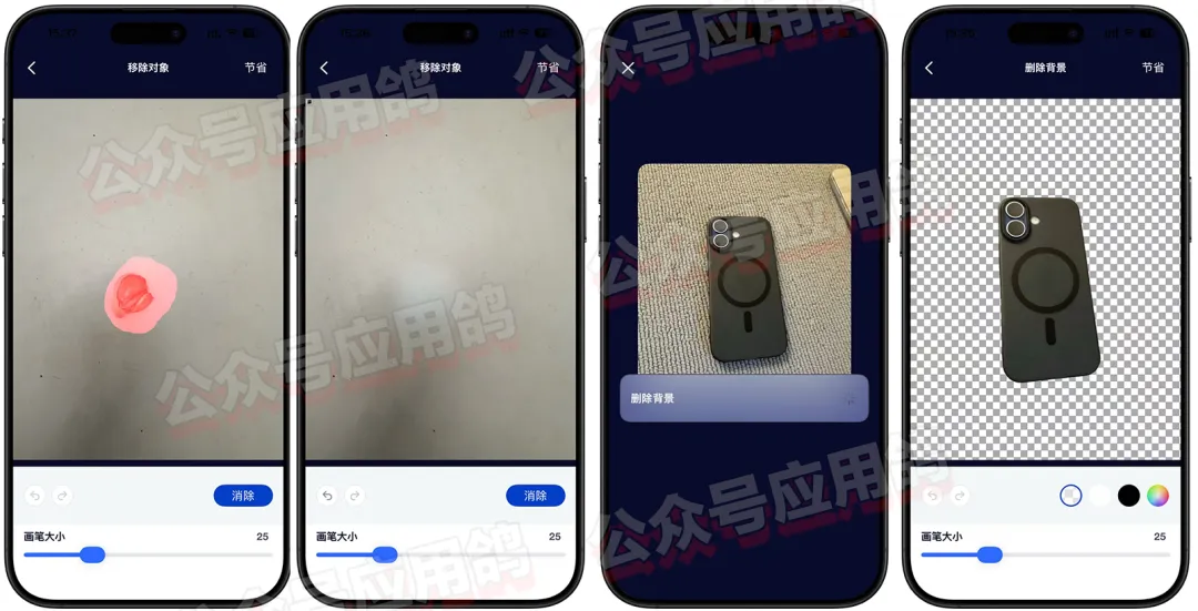 App Store 又发现了一个宝藏神器!快来尝鲜 大家好!App Store 发现了一个主打照片背景去除与擦除照片中不需要内容的编辑软件,软件目前无弹窗无内购! 背景去除器+ 我测试的时候只有2个功能可用,去除背景和抹除照片不需要内容,操作也非常简单,导入照片,选择工具,抹除可以通过调节画笔大小,去除背景则是自动,效果如下图! 获取方式 当前版本没发现弹窗,软件对于一些背景复杂的照片效果一般,抹除功能没有前几天分享的29.99 美刀,先到先得好用,没有更好选择的可以先用着!安装软件需要iOS 15.6 或更高版本