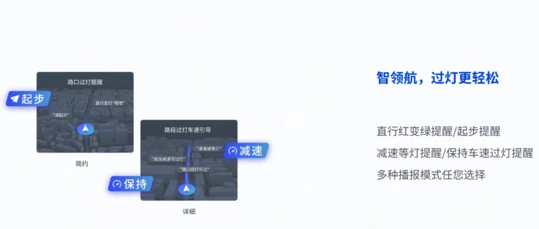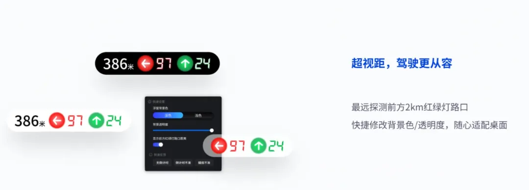 第二个,有语音播报提醒,比如起步的时候,会进行提醒,前方红绿灯如果说你能通过,它就会告诉你通过。如果通过不了,它会提前告诉你进行减速;